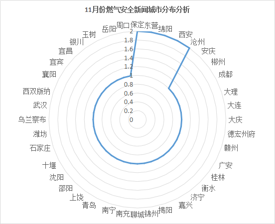 11月份平均每天发生燃气安全新闻不足2起,11月19日是全月的事故高发期,当日事故达4起。